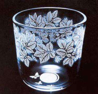 6.用温水泡除蜡层,擦干安博线上平台,美丽的花纹图案便显出来了.在酸液腐蚀工序中,可以利用不同浓度的氢氟酸浸蚀的次数、时间长短的不同,来取得花纹图案的深浅、明暗不同的立体效果.若想获得彩色效果,可用遮挡的方法,使用不同色彩的自喷漆,"绘"出彩色花纹图案来.