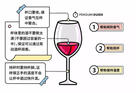 一只酒杯是怎样对酒的香气和味道产生影响的呢?其主要起作用的为三个部位:杯口、杯身和杯脚。具体来言即:杯口越小,聚香越强;杯肚越大,香气越浓;杯脚晃杯,味道更佳。